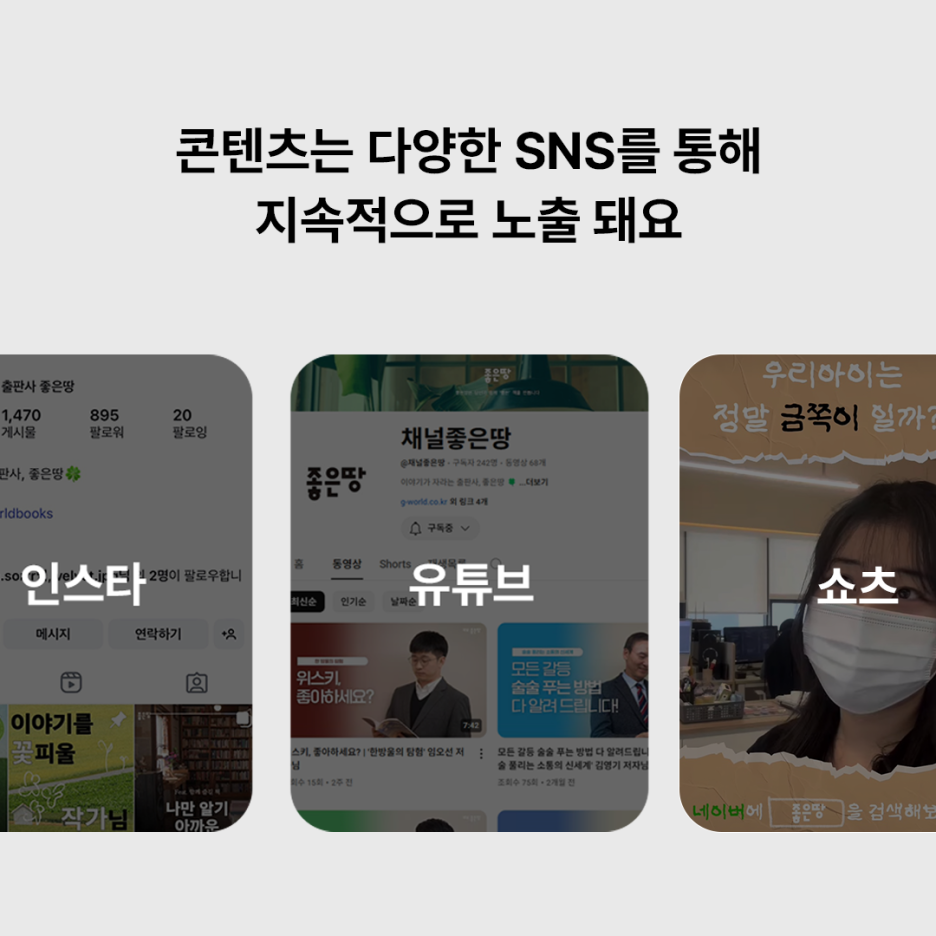 북카드, 북트레일러, SNS 콘텐츠 ,저자 인터뷰 및 신간 PR