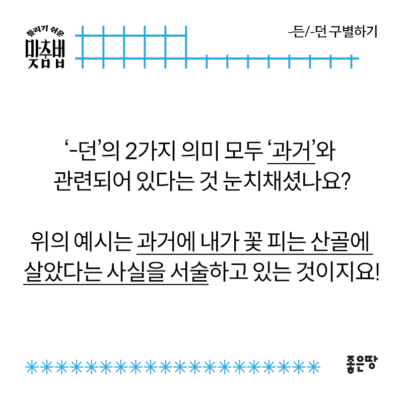'-던'의 2가지 의미 모두 '과거'와 관련되어 있다는 것 눈치채셨나요?