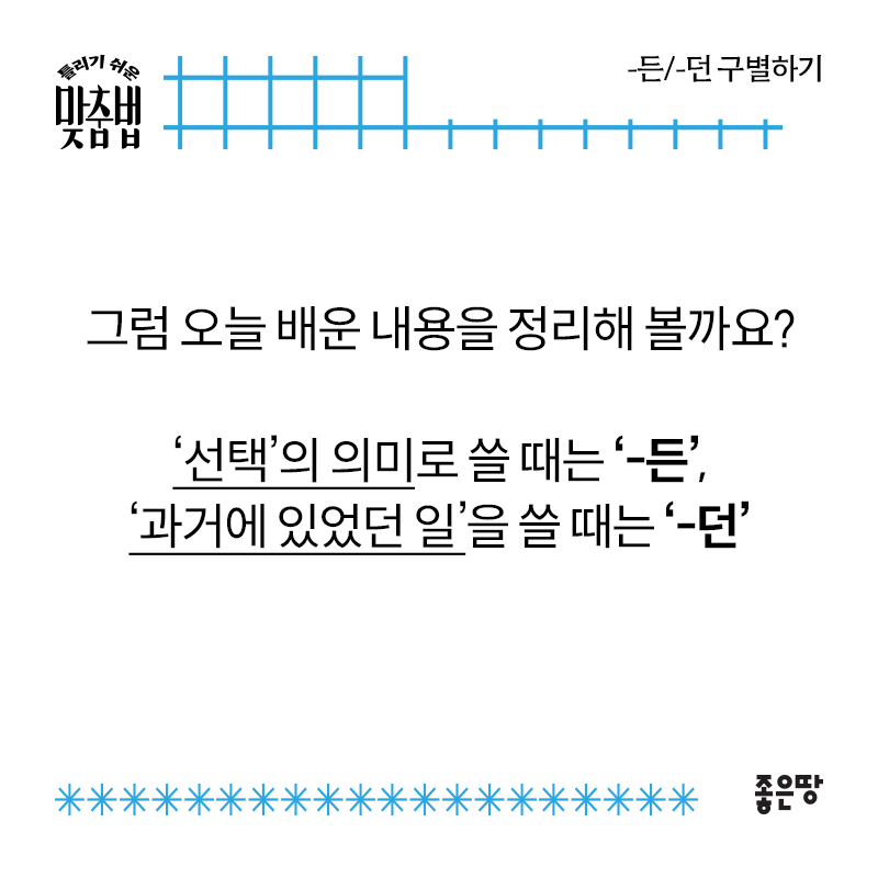오늘도 좋은땅 출판사와 함께 맞춤법 고민 하나를 해결했네요!